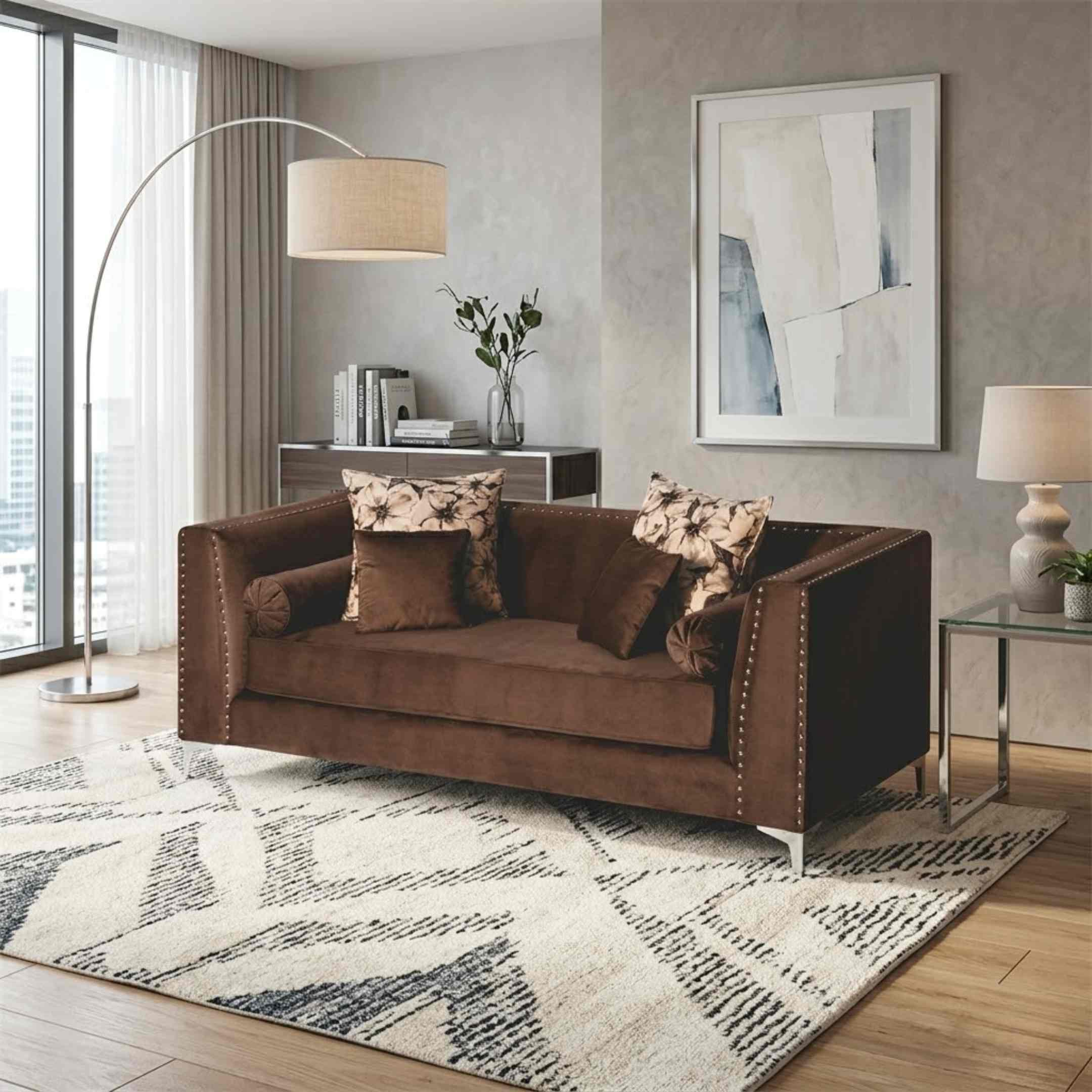 Con un ancho de 200 cm, ofrece un espacio amplio y cómodo. Su asiento, fabricado con placa de poliéster Soft, junto a un relleno que combina vellón siliconado y guata, garantiza una sentada suave que recupera su forma original. Los detalles de terminación, como sus costuras reforzadas y la aplicación de tachas (disponibles en plateado o empavonado), aportan ese toque artesanal y sofisticado que caracteriza a los muebles de alta gama.