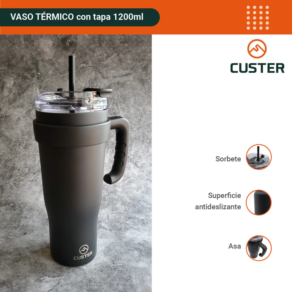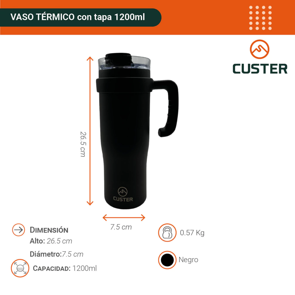 El Vaso Térmico Custer combina gran capacidad y máximo aislamiento en un diseño práctico y moderno. Con su capacidad de 1200 ml, es perfecto para largas sesiones de ejercicio, jornadas laborales o actividades al aire libre. Su tecnología de doble pared mantiene tus bebidas frías por hasta 8 horas y calientes por hasta 6 horas, garantizando siempre la temperatura perfecta.